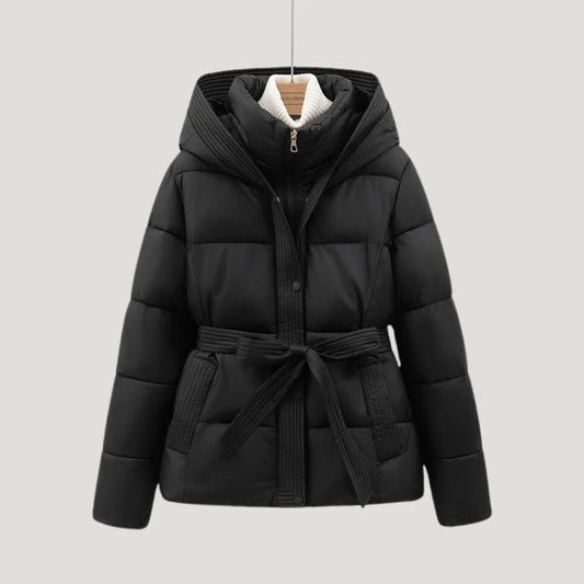 Women's Winter Quilted Puffer Jacket with Hood and Adjustable Belt